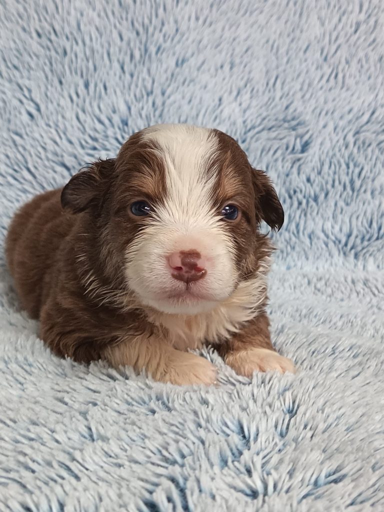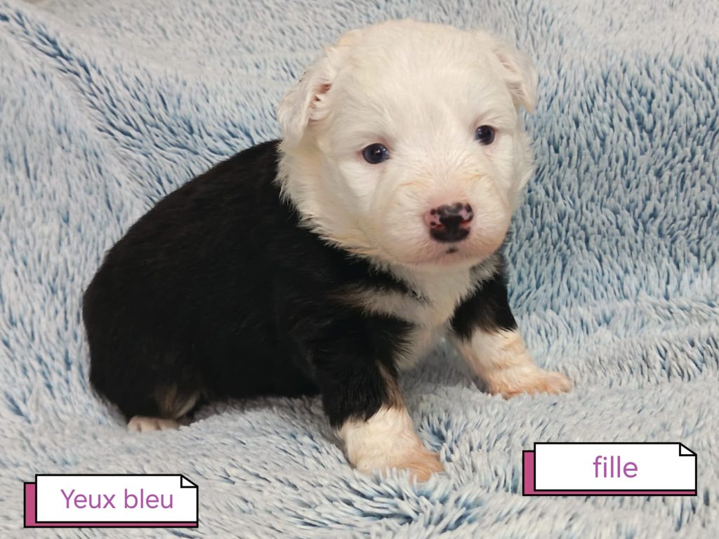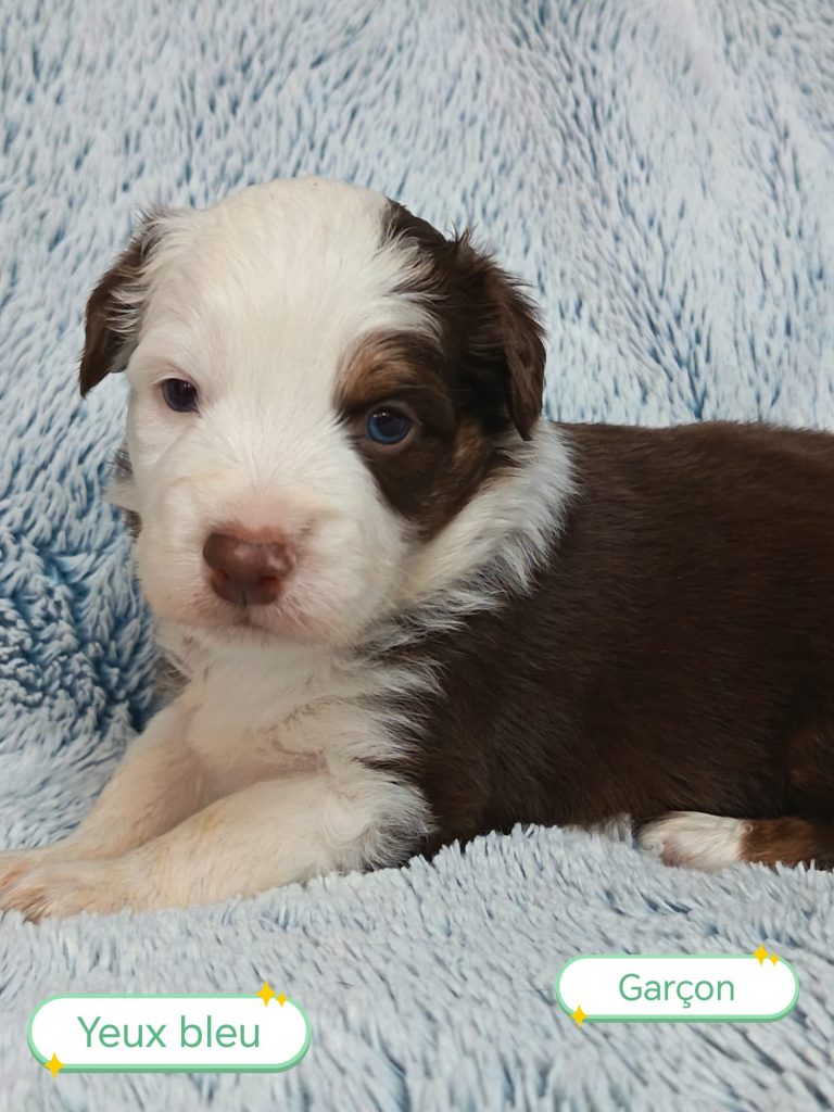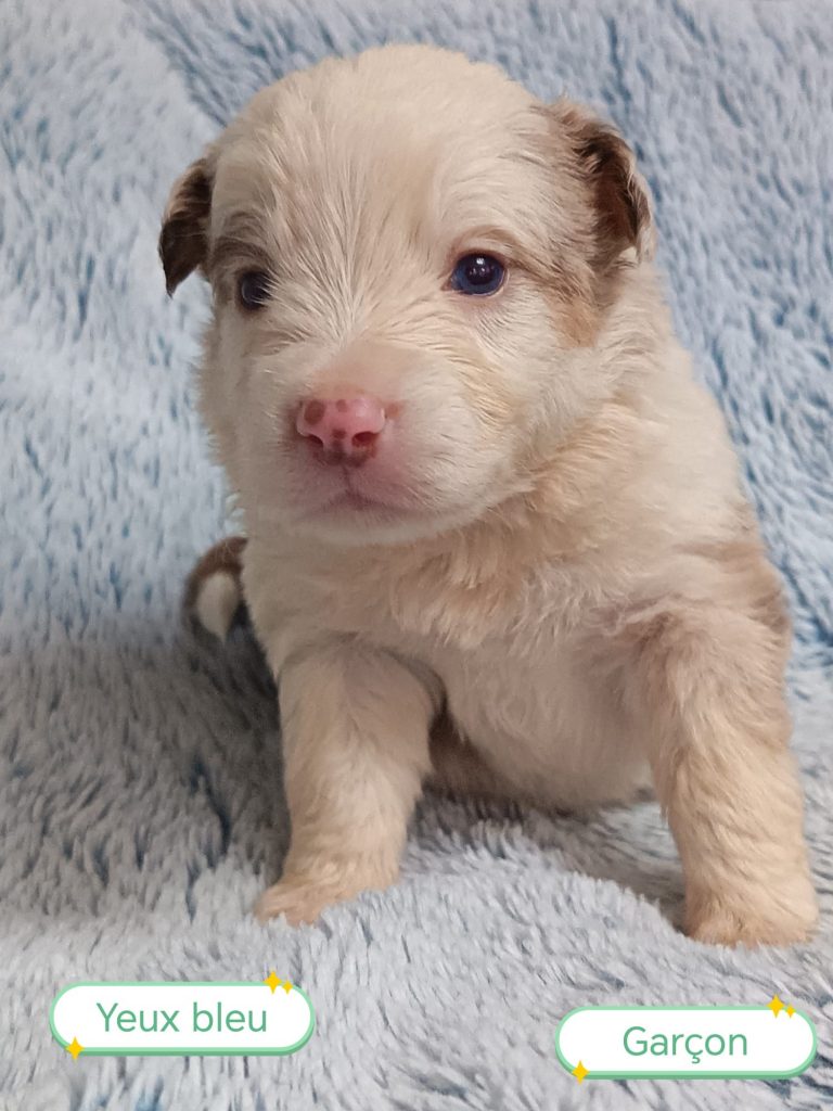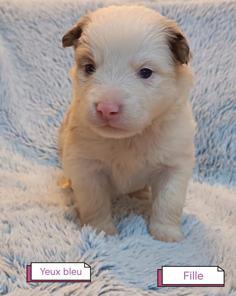 Sexes : 6 femelles et 2 mâlesCouleurs & yeux : 2 Mâles : – 1 rouge tricolore – 1 rouge merle et 6 Femelles : – 5 rouge merle – 1 rouge tricolore